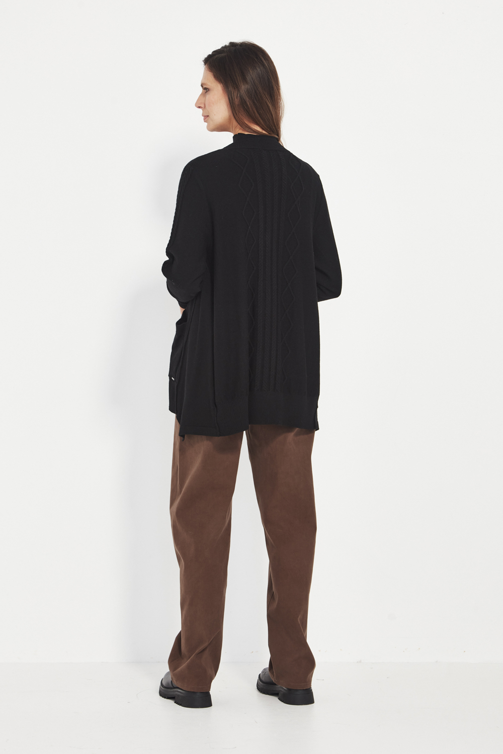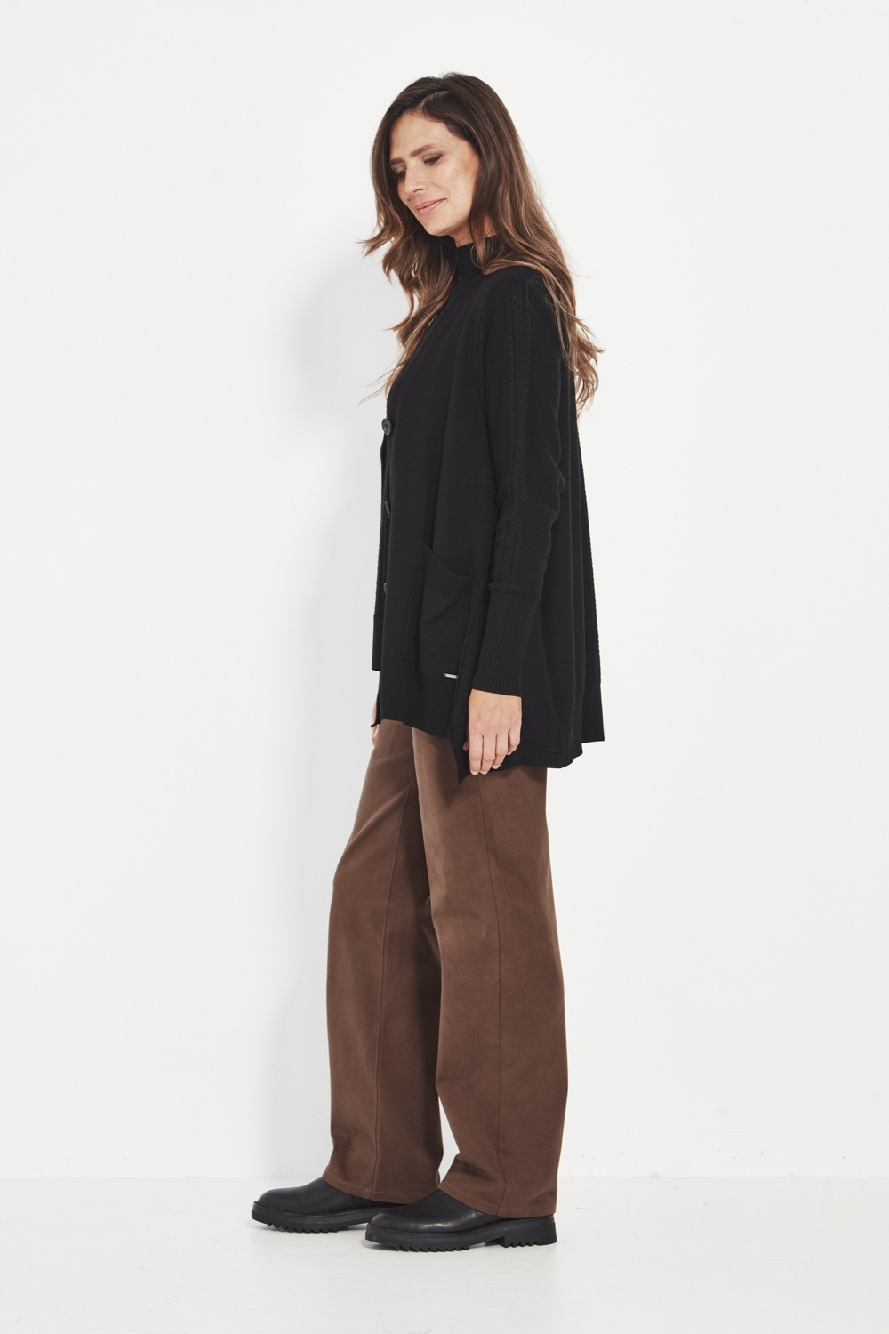 Patch pockets add practicality and relaxed charm, while the stepped side hem gives the cardi a contemporary shape that flatters and moves with ease. Feminine, versatile, and softly structured — the Cherish Cardi is an effortless layer for denim, soft pants, or winter dresses.