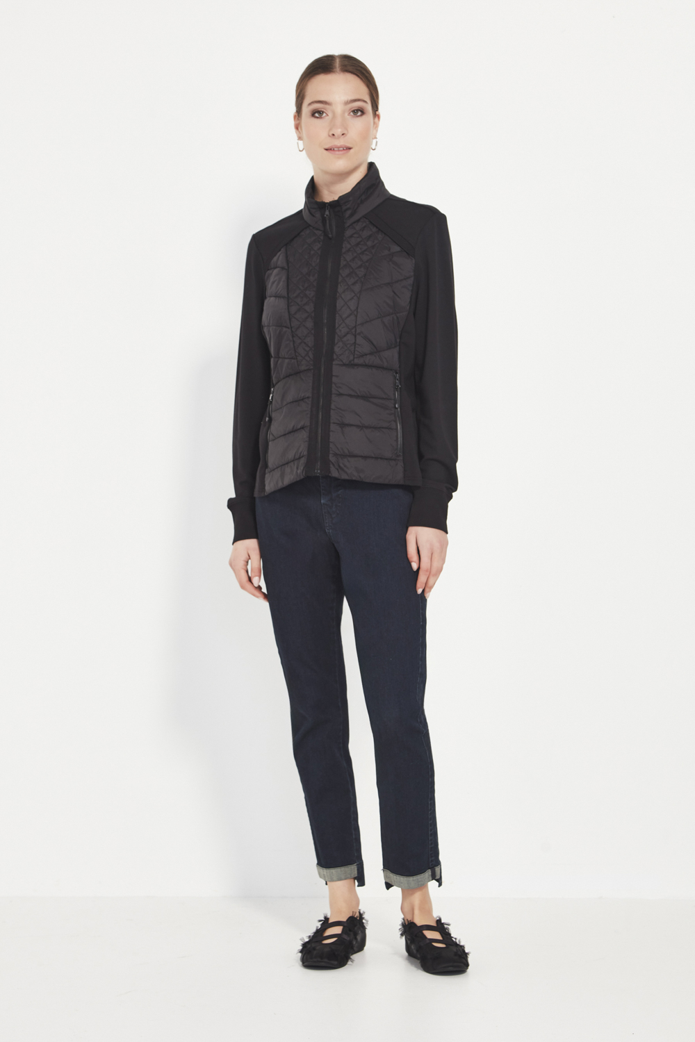 The Idaho Jacket is designed for effortless layering and everyday comfort. Crafted from soft, unbrushed French terry, it provides light warmth and an easy feel. The quilted front panels add quiet structure and texture, complemented by a high neckline and full-length sleeves with cuffs for a refined finish.