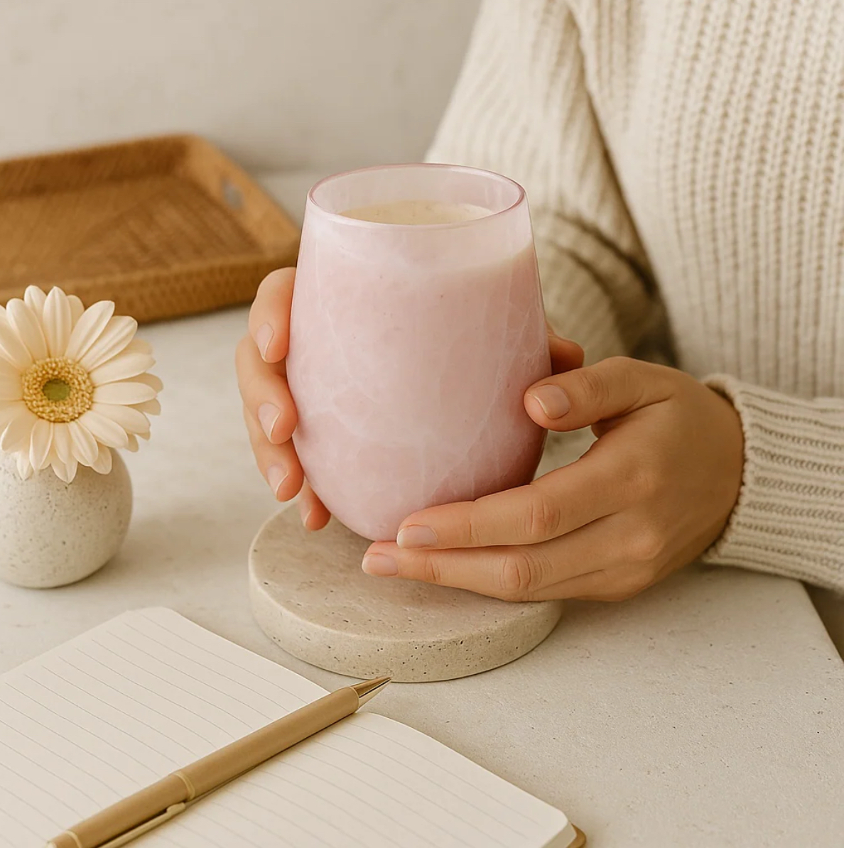 Our gorgeous Rosa is back for a limited time. Classic vintage shape in pale pink with fine white marble veins running through. Each vessel is hand blown and individual. We have chosen our fav feminine fragrances for these very delicate glass vessels.