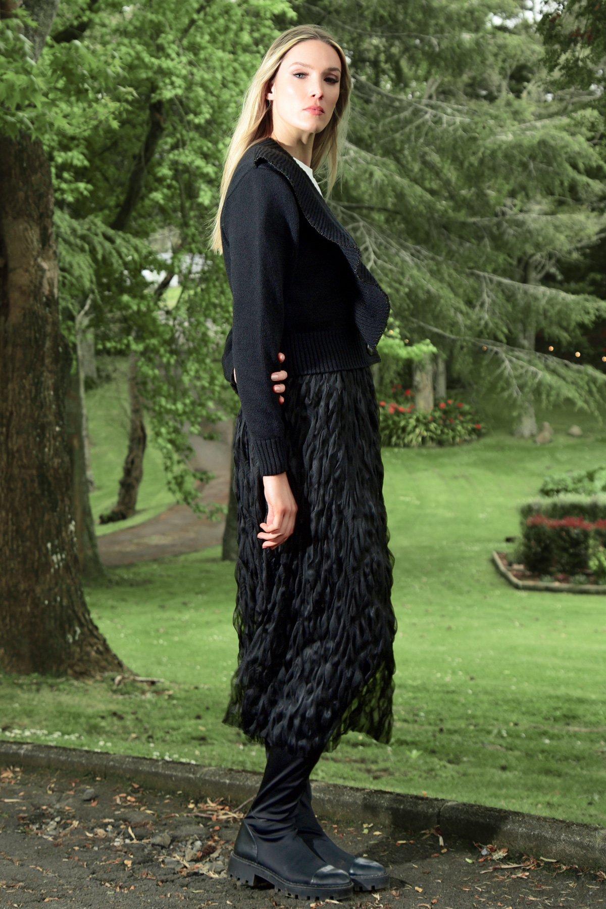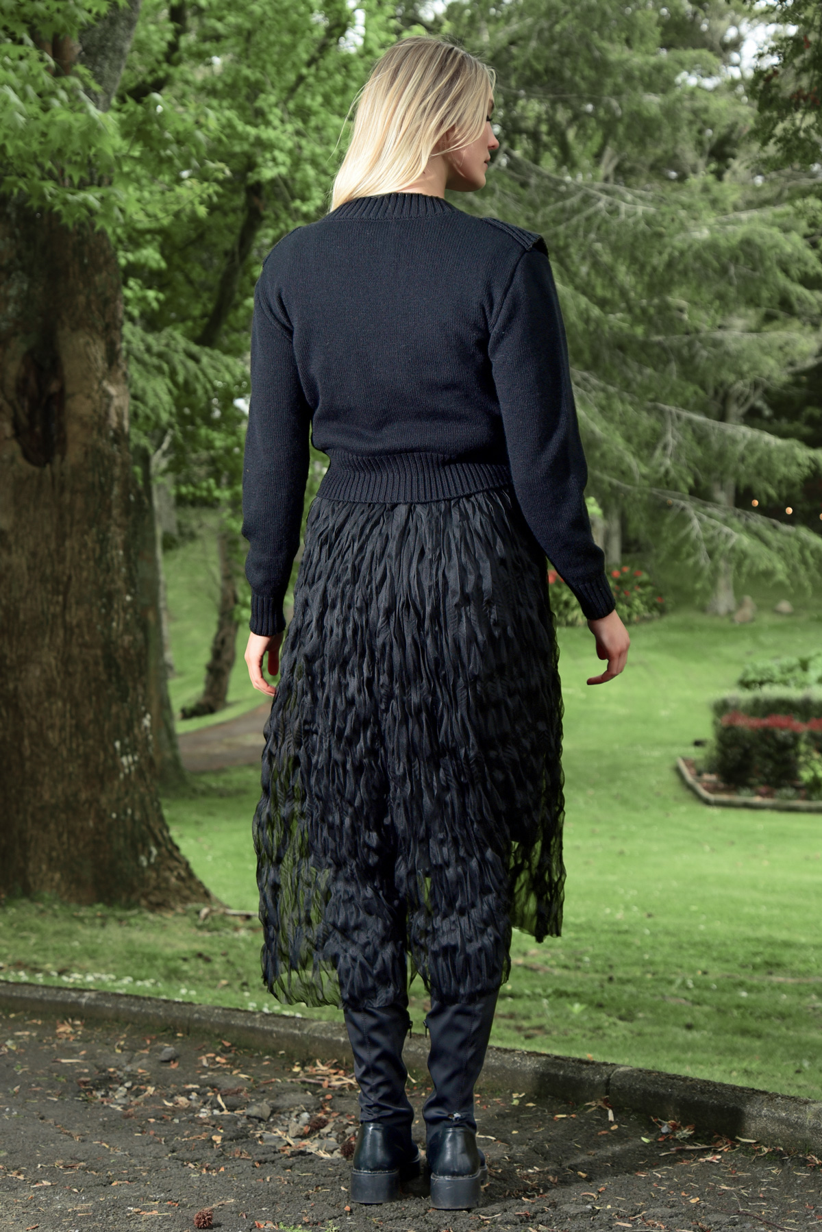 The crushed mesh ‘First Crush’ fabric is showcased in the ‘Making Strides’ skirt. A classic shape makes this skirt easy to style in a multitude of ways. Pair with a knit and boots for a casual look, or the ‘Got You Covered’ top for an easy weekend outfit, ready to take you from day time errands to dinner out!