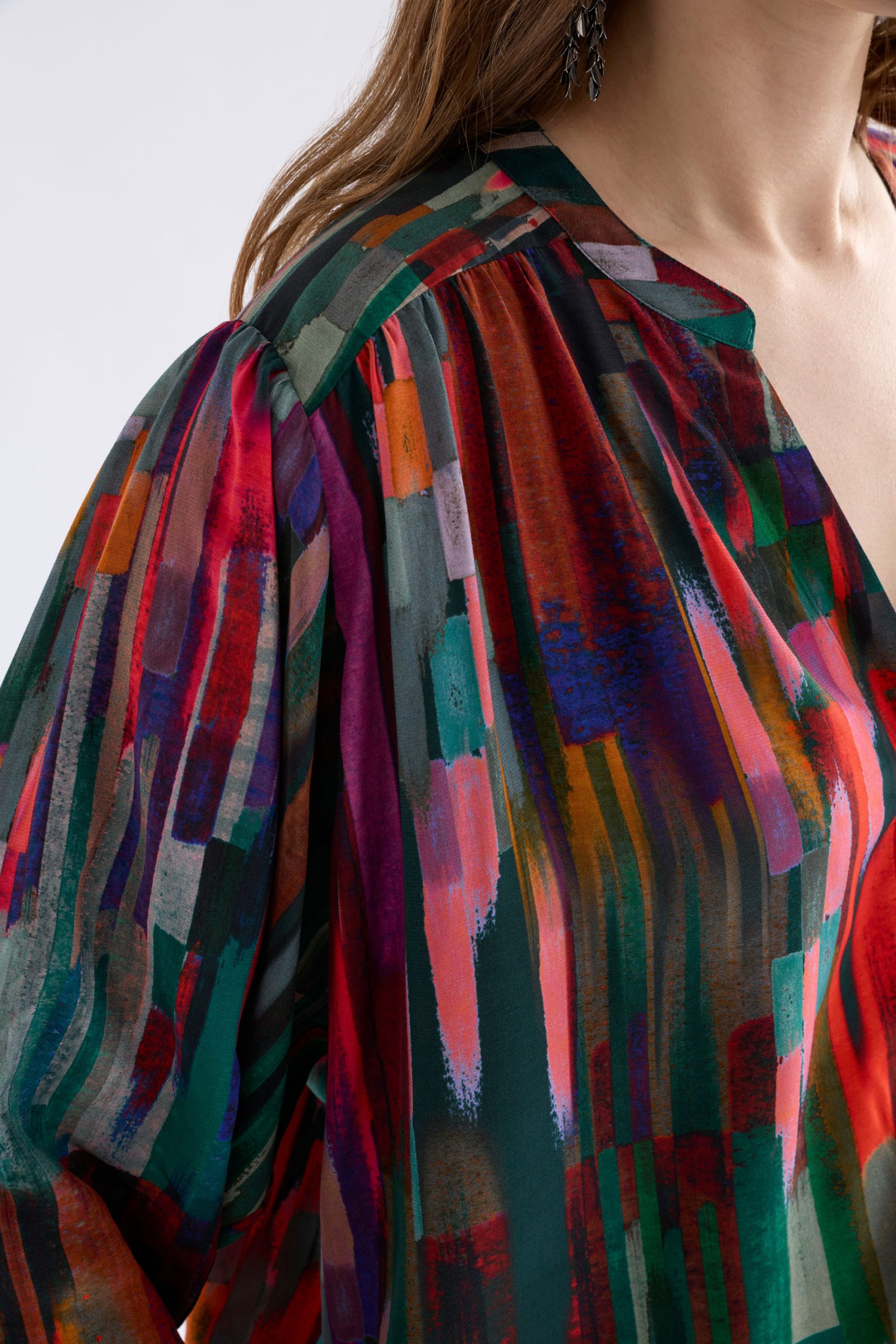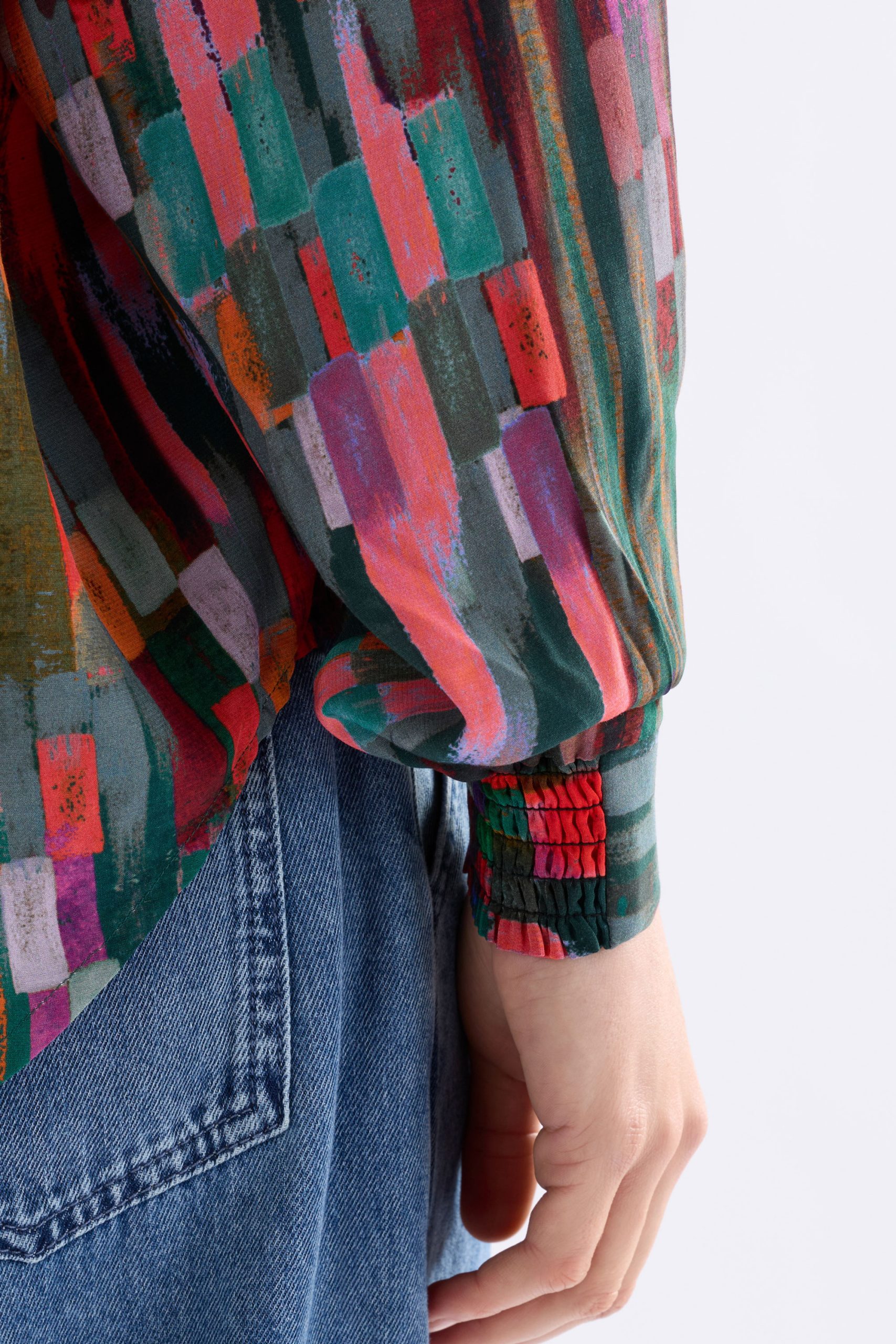 Crafted from a lightweight woven viscose, Elk’s Amalia Top falls with an effortless drape. The abstract Mella Print brings a soft wash of colour, adding interest without overwhelming. Gentle gathers through the front and back yokes, paired with softly voluminous sleeves, create a relaxed, feminine shape that moves with you.