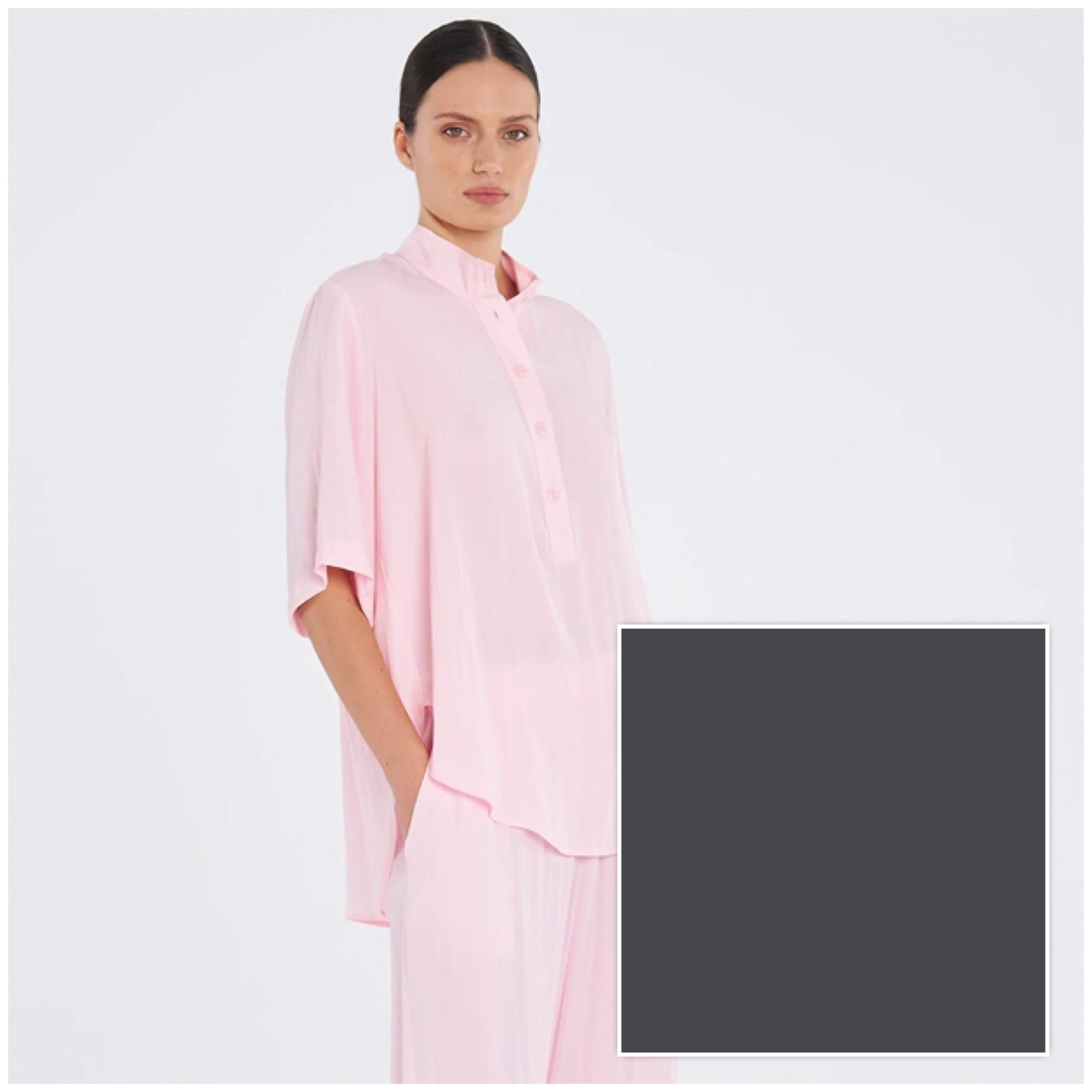 Crafted from Mela Purdie’s classic Mache, a fine Denier technical weave with an airflow finish. The Swish Tab Plaza is a longline top, featuring a button front closure and funnel neckline. this is an effortless piece that can easily be dressed up or down.