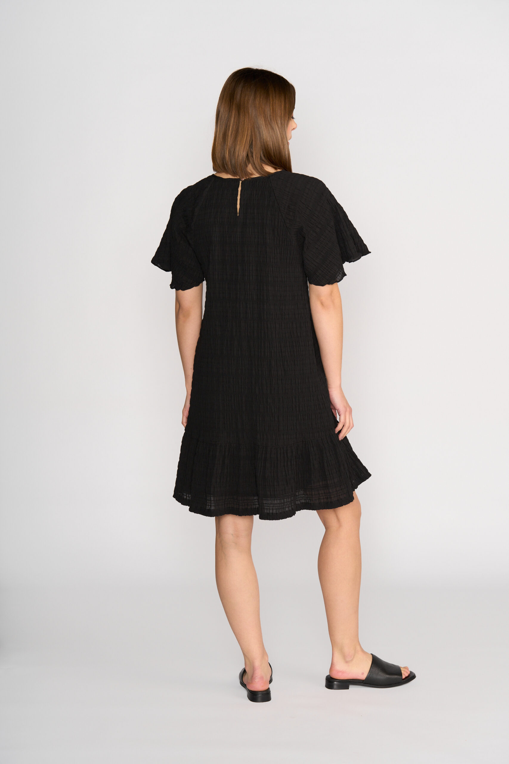 The Eclipse Dress is a short, floaty style made from a lightweight textured fabric with checkered stitching details and a soft, drapey finish. With its airy raglan sleeves and gathered hem panel, it’s an easy way to dress things up without feeling too structured. Fully lined through the body, it’s a relaxed silhouette that still feels special.