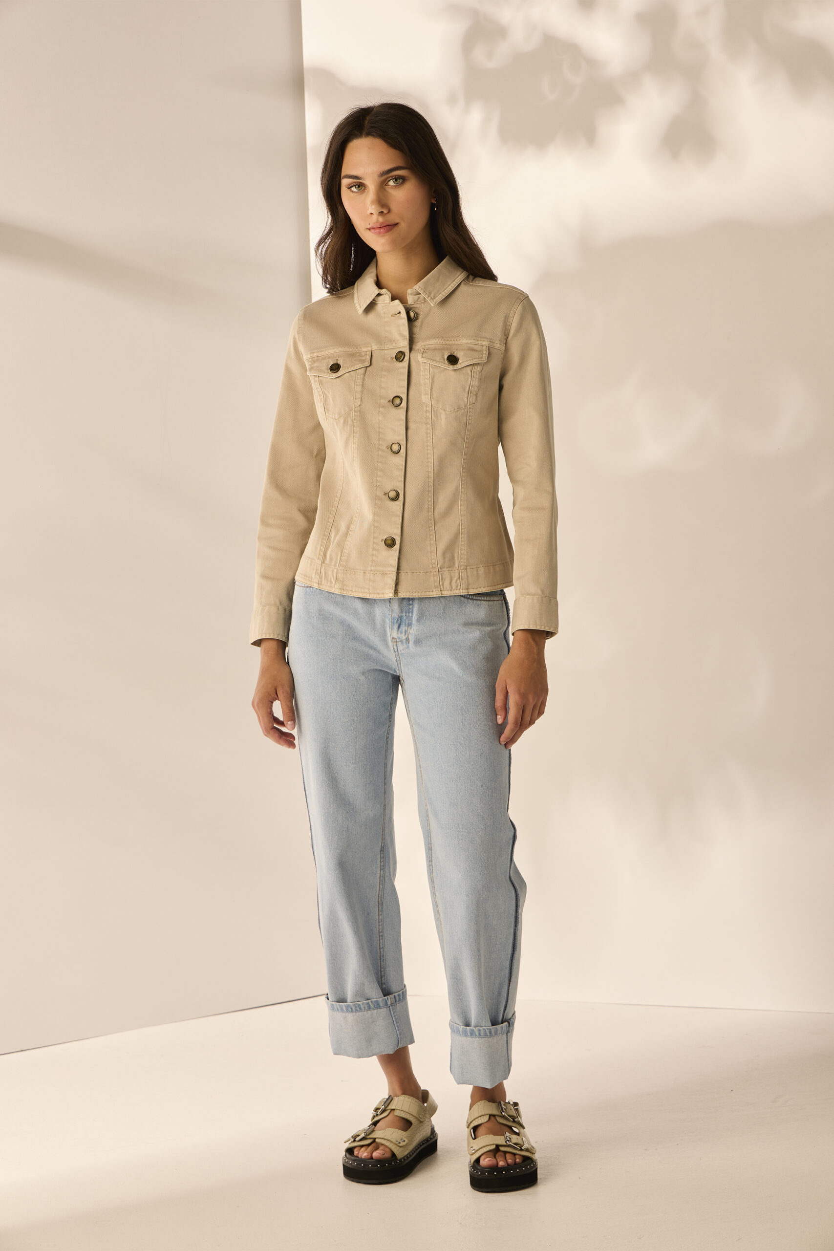 This summer, reach for the Heather Jacket, a casual denim jacket crafted in the modal, featuring back tabs for subtle detailing. Pair it with the Heather Pant or Heather Short for an on-trend double denim look.