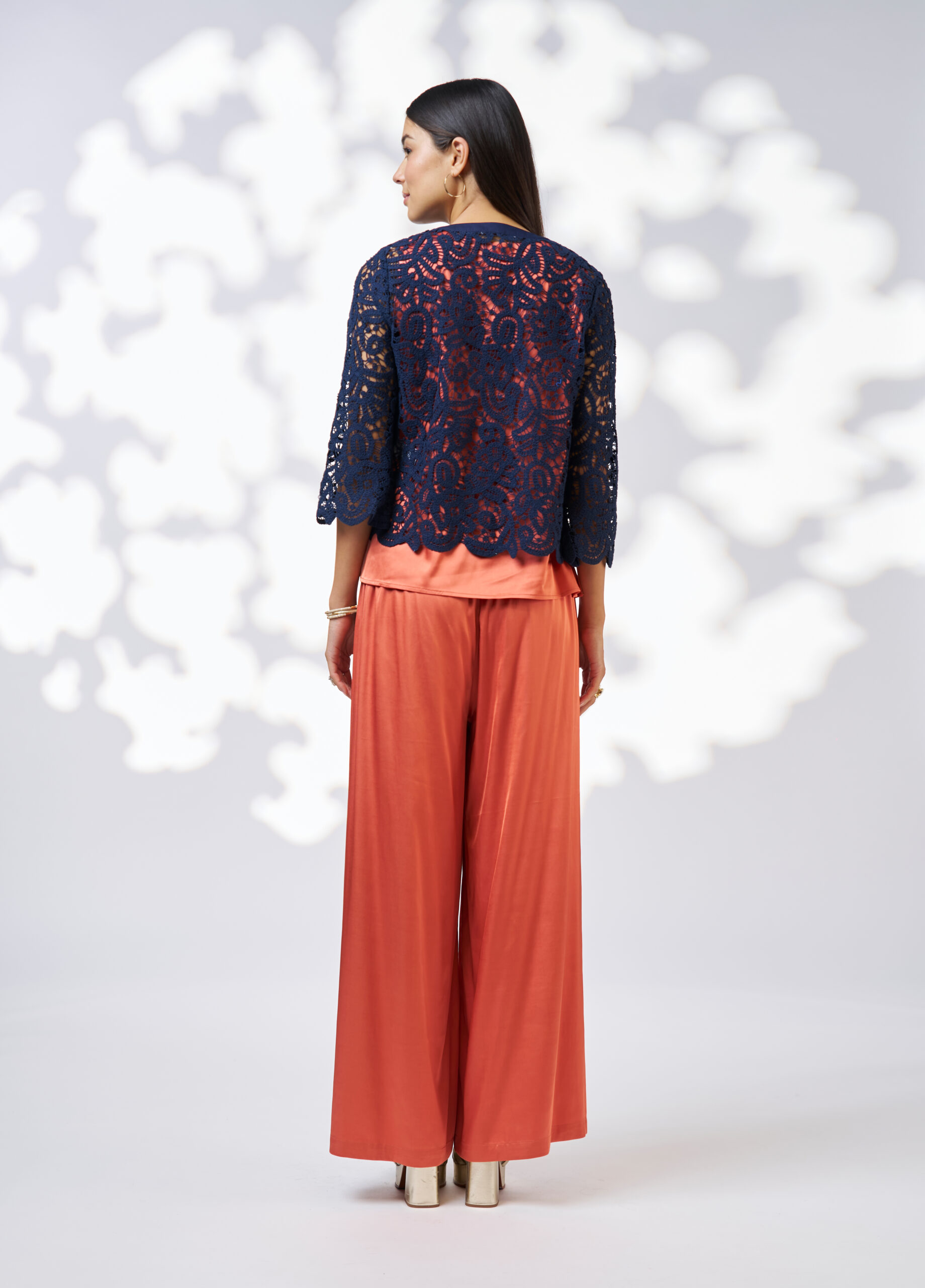 Button-through crochet lace cardigan, with scalloped edging and cotton placket and collar. The perfect layering piece to elevate any outfit.