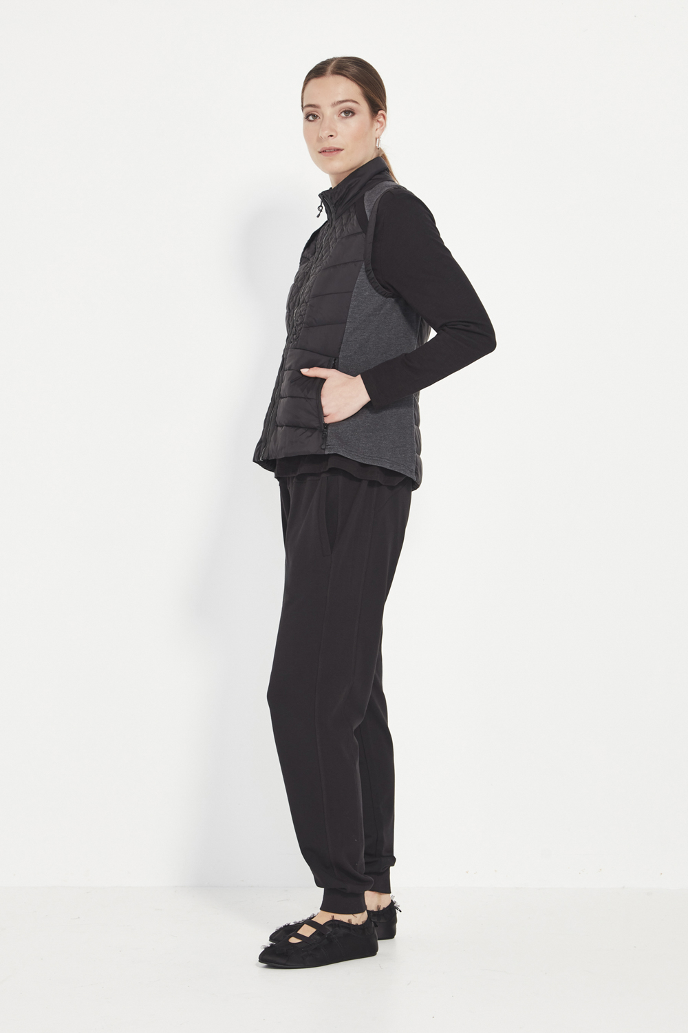 – Soft, unbrushed French terry with quilted front panels