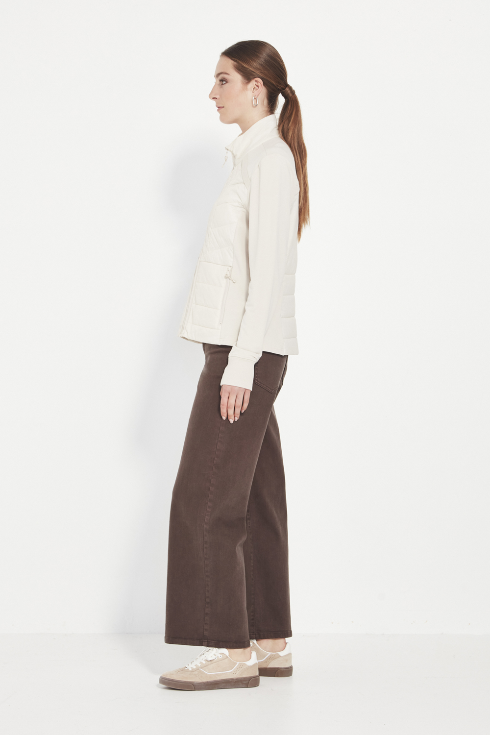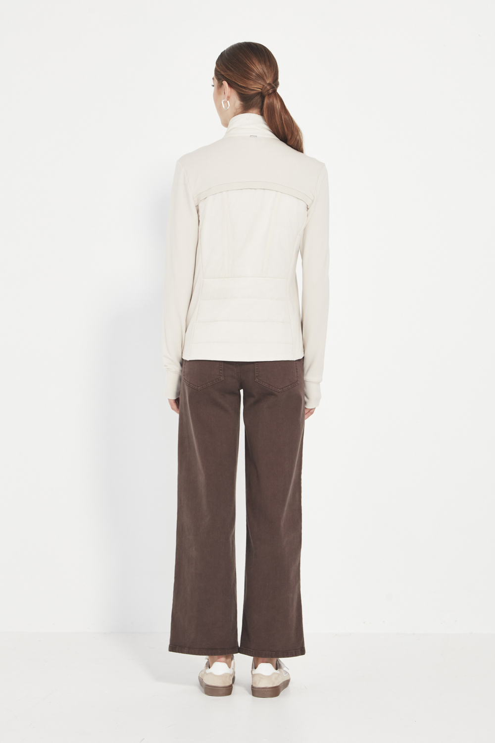 The Idaho Jacket is designed for effortless layering and everyday comfort. Crafted from soft, unbrushed French terry, it provides light warmth and an easy feel. The quilted front panels add quiet structure and texture, complemented by a high neckline and full-length sleeves with cuffs for a refined finish.