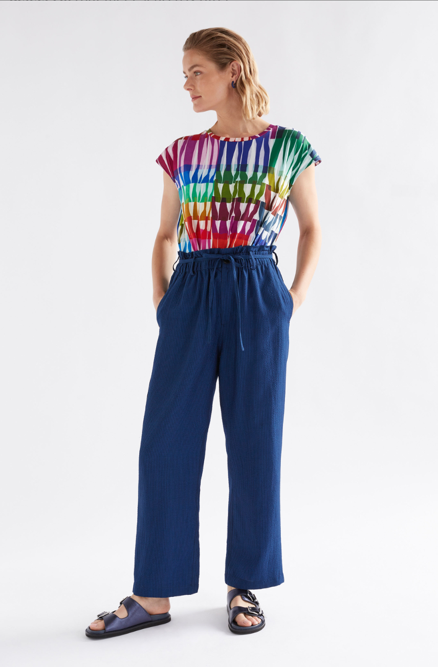The Anden Tee is a printed tee featuring the new, vibrant Lind print. This tee has a regular fit, with capped sleeves, underarm inverted tucks for added volume, and side splits at the hem. Crafted from 100% organic cotton jersey, this tee is breathable and soft, with some structure to it. Style with your favourite denim or dress it up with linen bottoms.