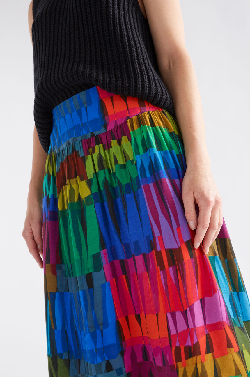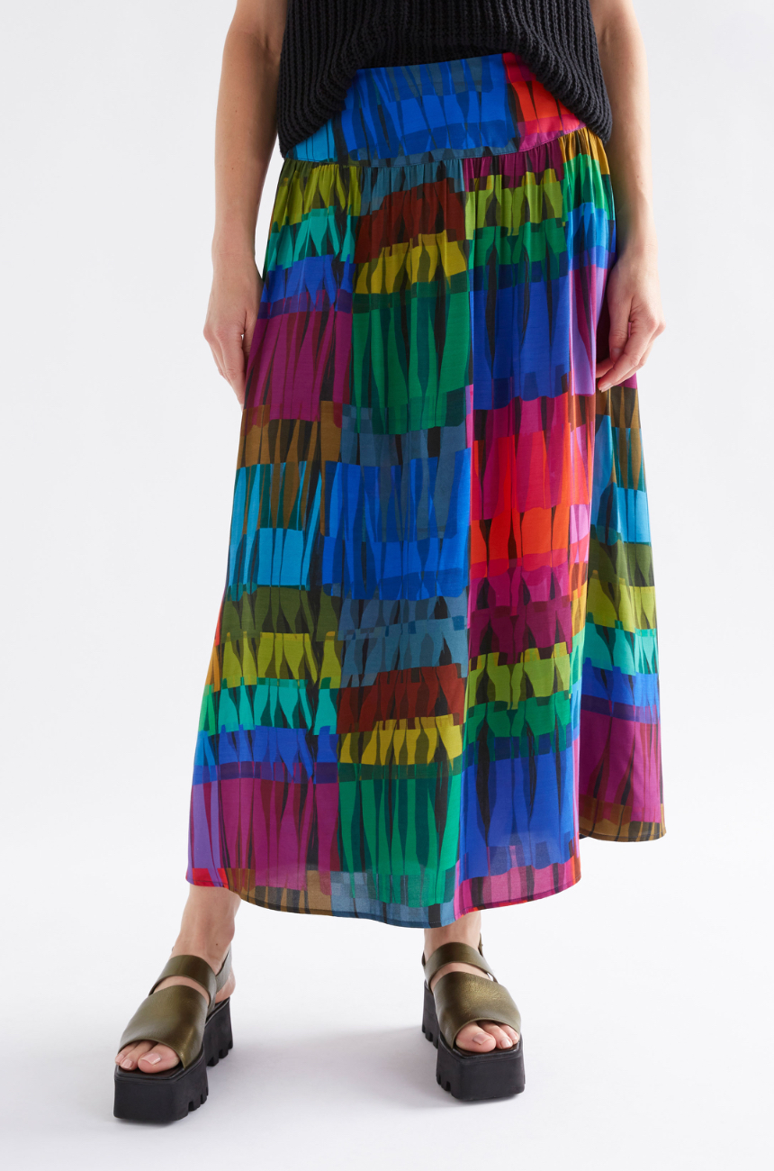 Add a splash of colour to your outfits with the Reva Skirt. Featuring the vibrant multi-coloured Lind Print, this midi length style has a wide basque waist band and sits high on the waist. Crafted from a soft, floaty LENZING™ ECOVERO™ viscose with a matte sheen. This piece has a regular fit waist, straight cut and angled side pockets. Style with simple tops tucked in for your new favourite work-to-weekend look.