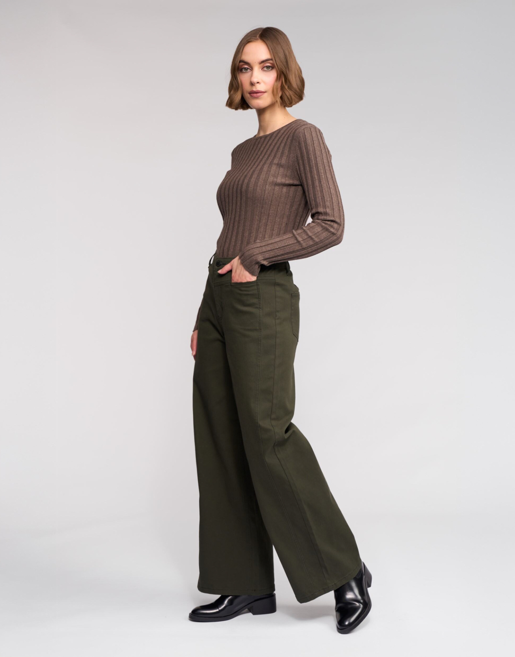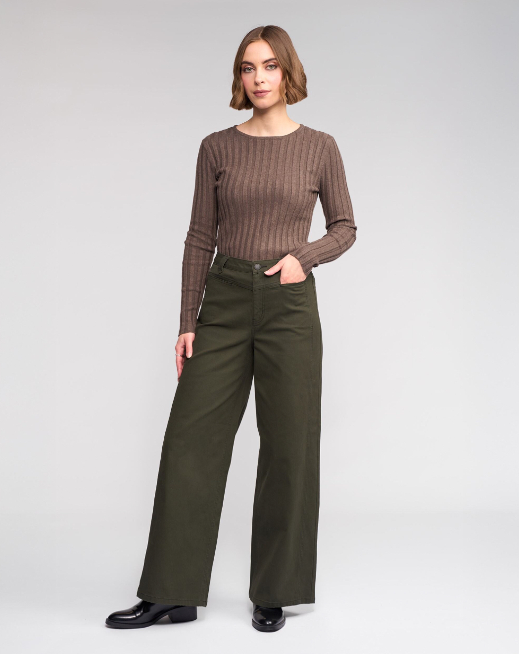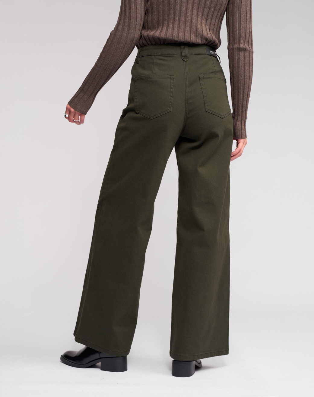 • Wide leg, full-length jean