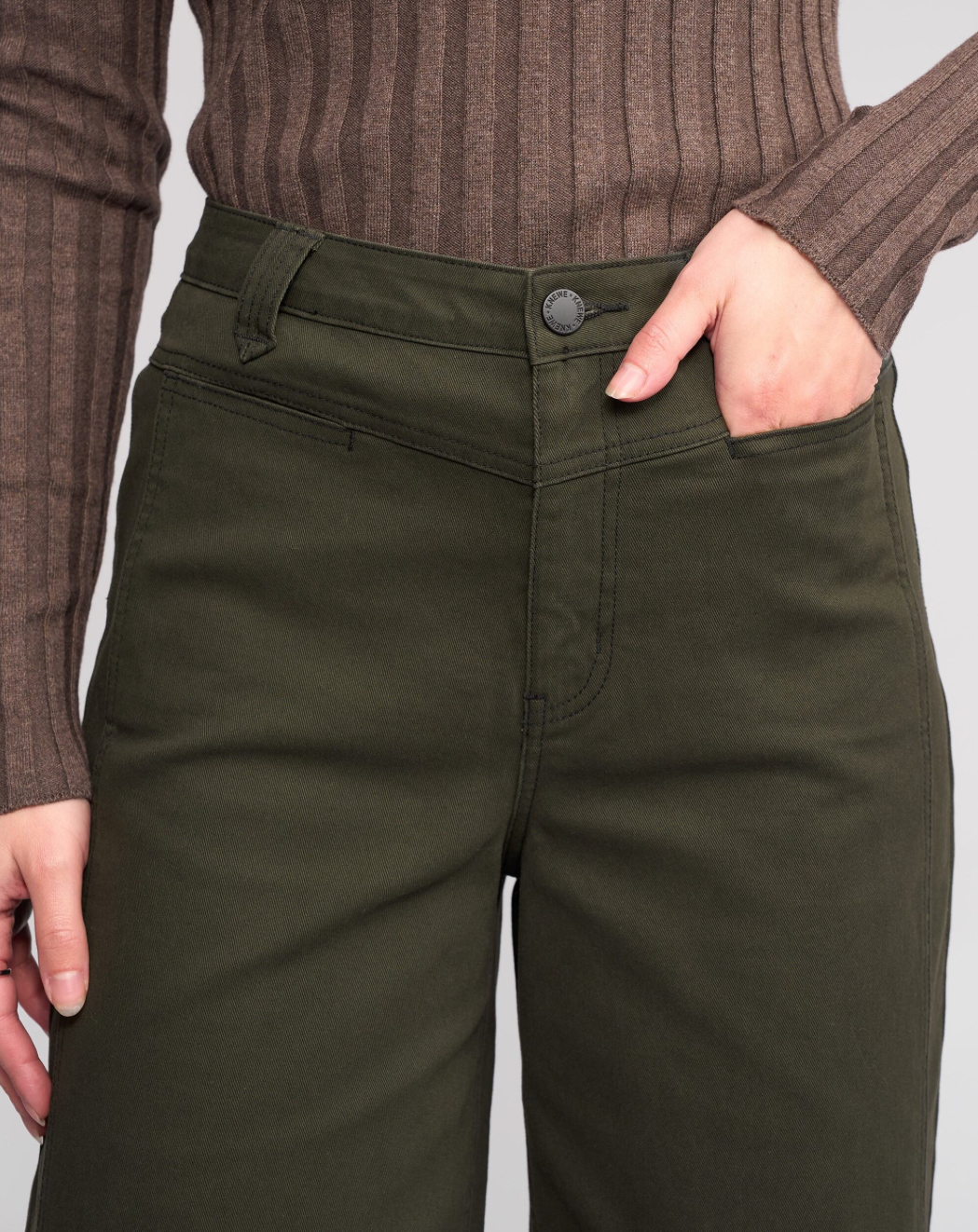 • Waistband features metal KNEWE logo button closure, 2 front beltloops and 3 back beltloops