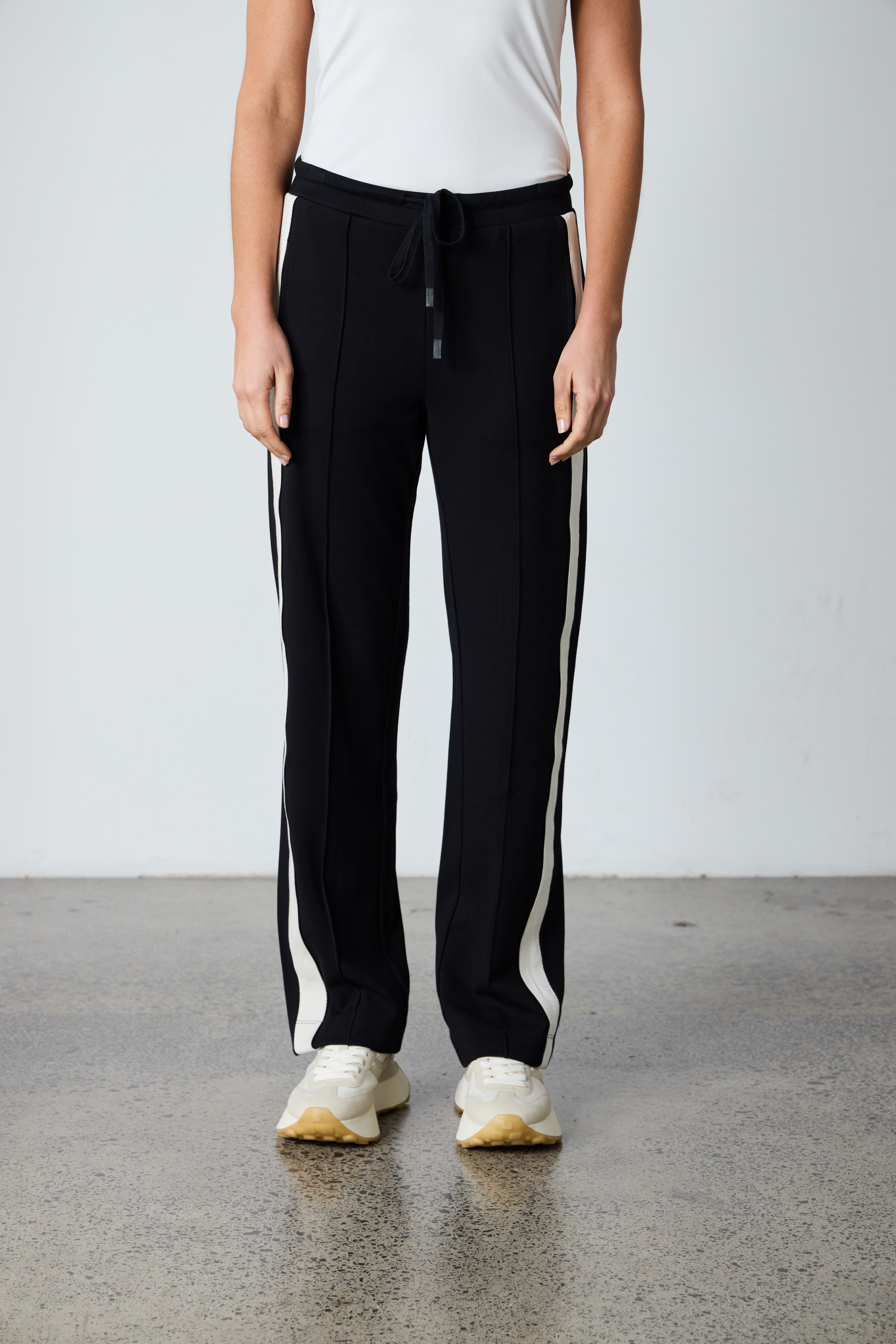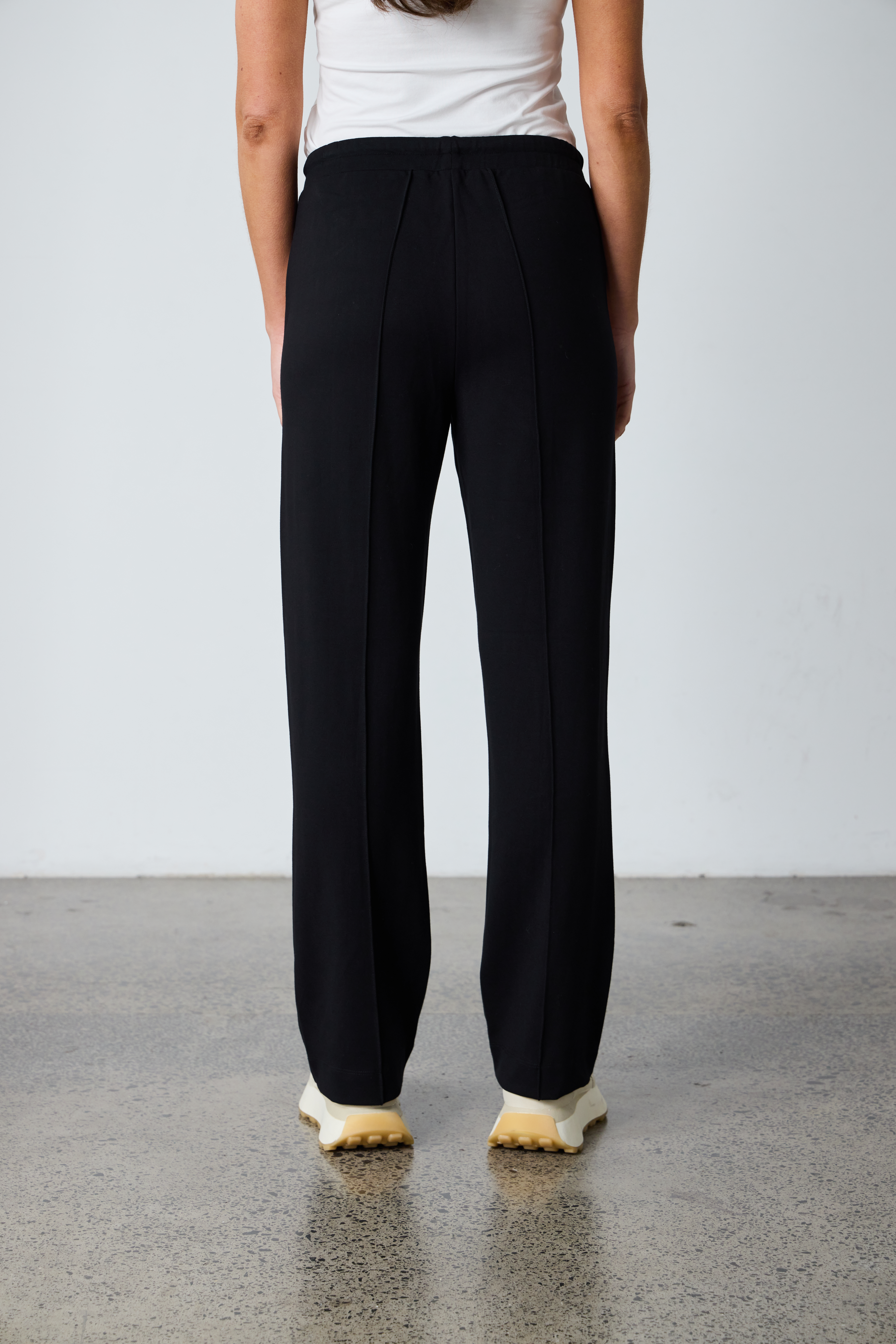 The Century Pant offers a relaxed wide-leg fit with an elasticated waistband and drawcord for comfort. Featuring cream herringbone tape along the side seams and a pintuck stitch down the center leg, this versatile style blends ease with effortless sophistication—perfect for elevating everyday looks.