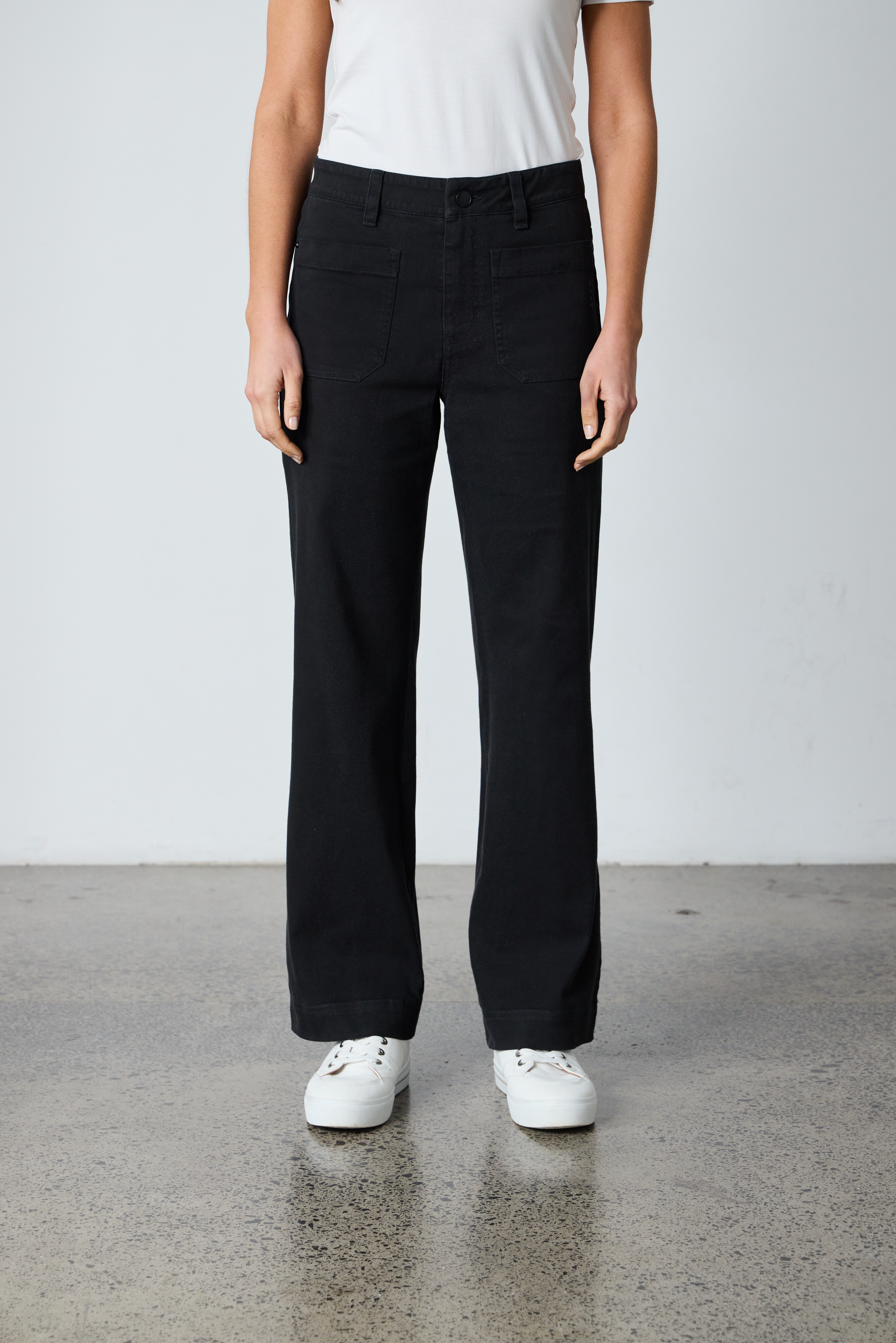 The Chrome Jean offers a wide-leg silhouette crafted from the softest stretch denim for unmatched comfort and style. Featuring front patch pockets adorned with cross-stitch embroidery. The deep hems allow for a lovely drape, making these jeans a wardrobe essential.