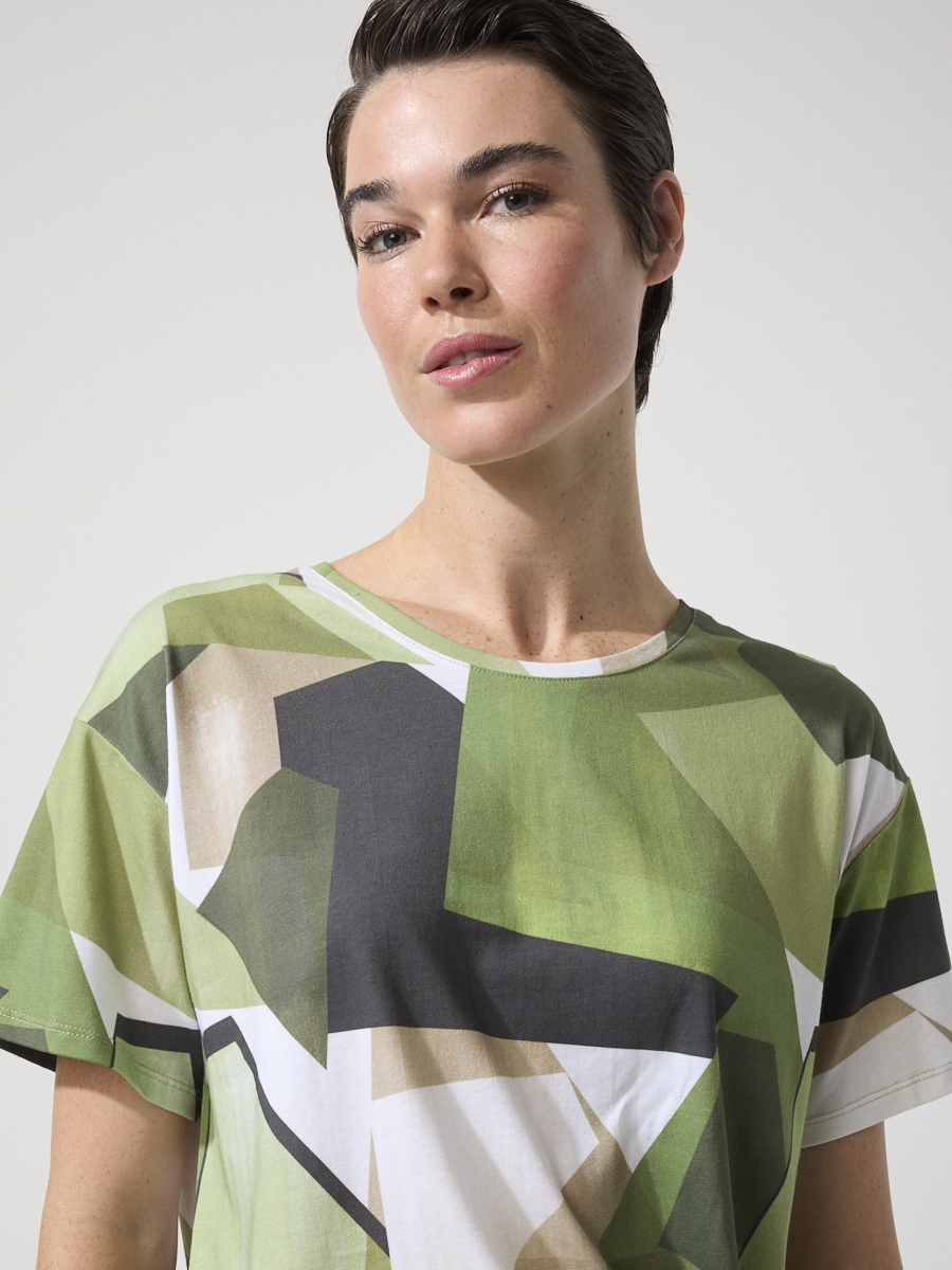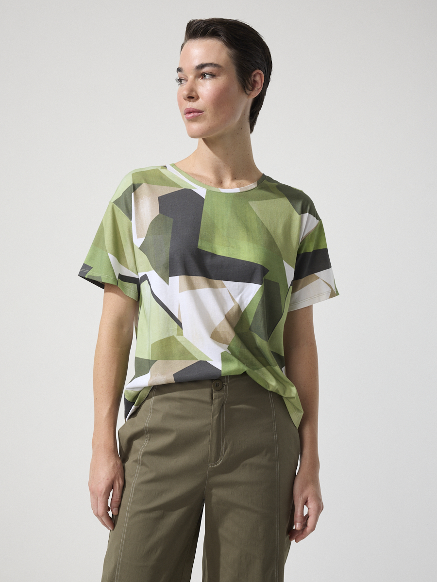 The Nature Scape Tee reimagines a classic t-shirt silhouette with an exclusive print inspired by organic shapes and soft landscapes. Set in green and grey tones with subtle accents of cream and white, the pattern makes it more than just an everyday tee – it’s an easy way to introduce a statement element into simple outfits. Crafted from 100% cotton for comfort and breathability, it’s cut with a regular fit, short sleeves, and a round neckband that make it versatile enough to wear on its own or layered under tailoring.