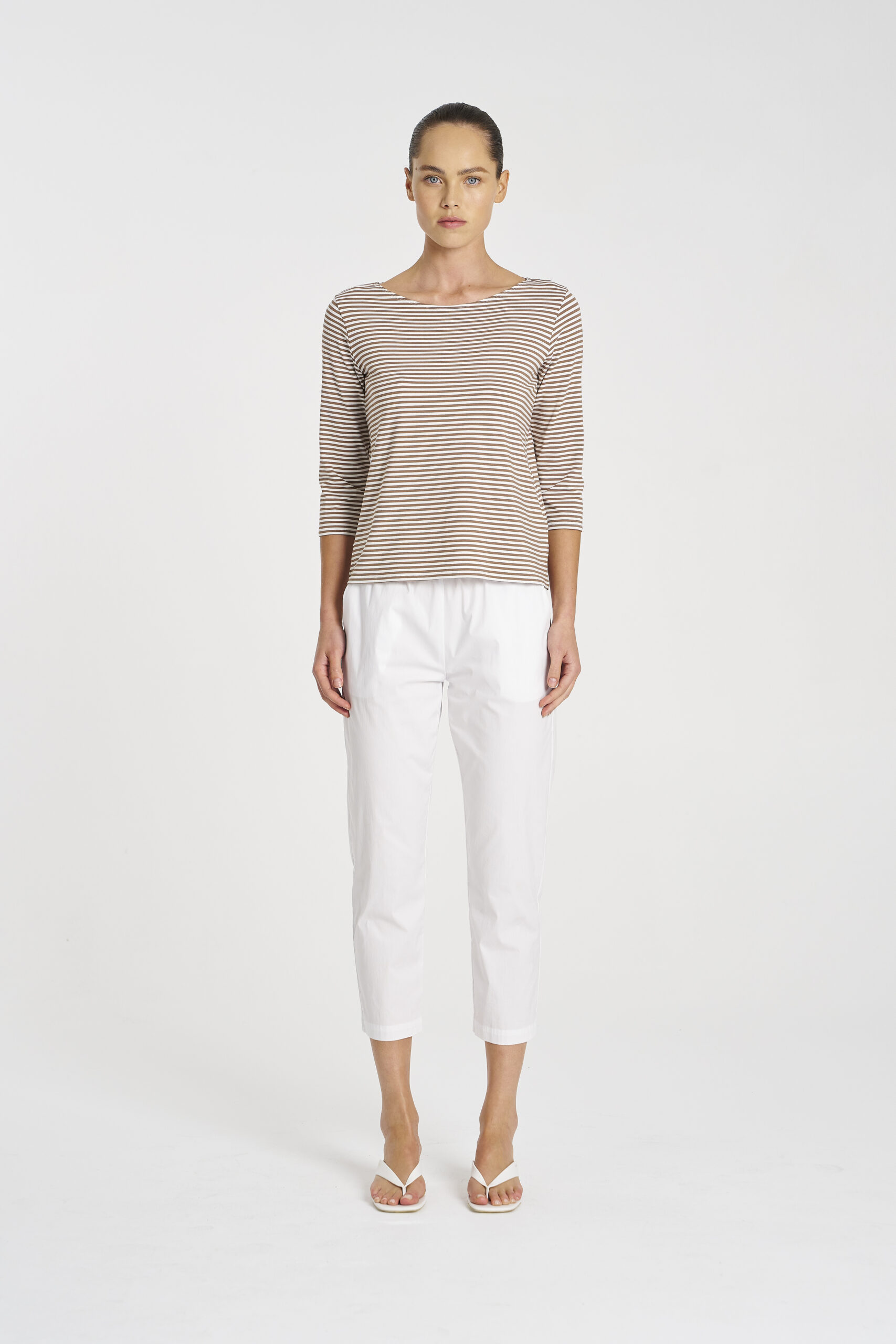 Mela Purdie – Relaxed Boat Neck F538 2630 -Yacht Stripe – Saddle/White (Presale)