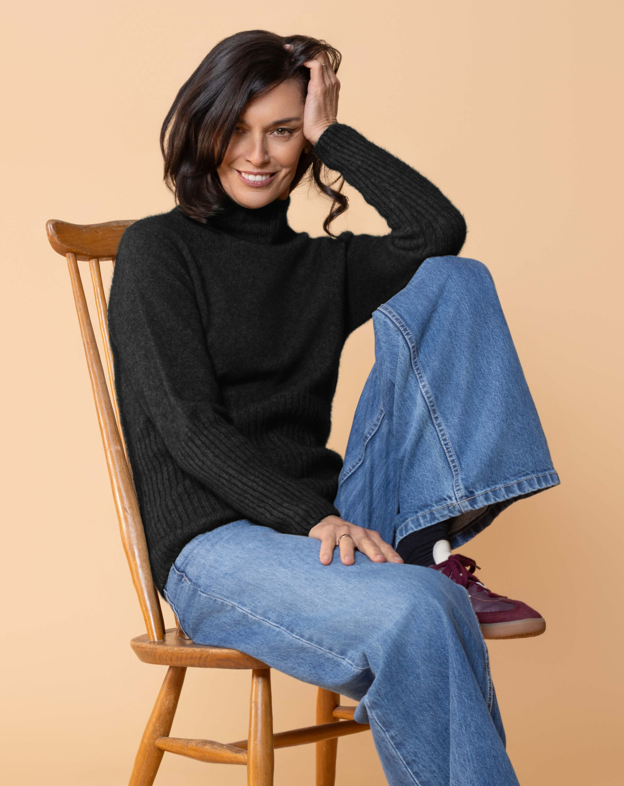 Slimfit single jersey construction, integral turtle neck. WholeGarment seamless construction.