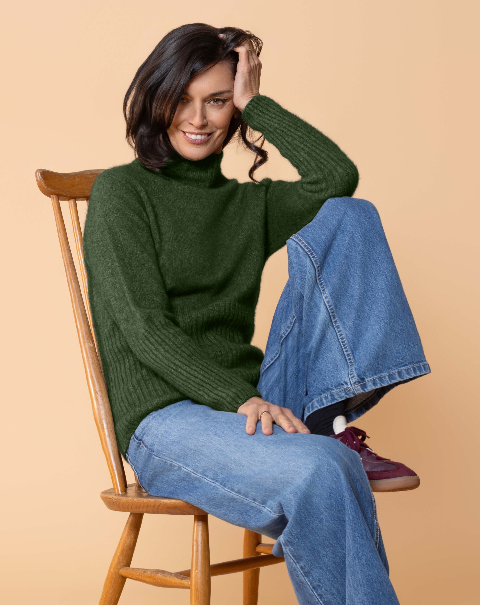 Slimfit single jersey construction, integral turtle neck. WholeGarment seamless construction.